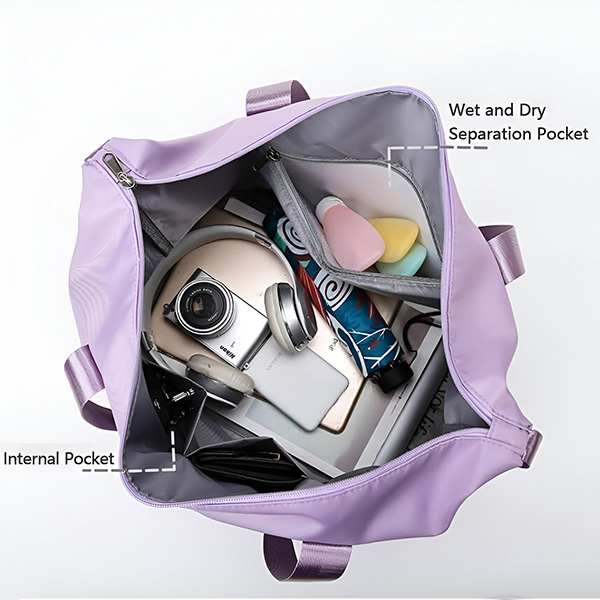 Тази чанта разполага с разделител за мокро и сухо за удобно съхранение на мръсни или мокри дрехи и кърпи.
