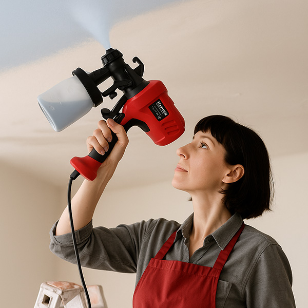 Специалната дюза създава фина мъгла от боя, която се наслоява равномерно, без ивици или петна. Инструментът създава усещането, че всяка зона се боядисва сама „както трябва“, независимо от материала, опита на потребителя или посоката на движение.