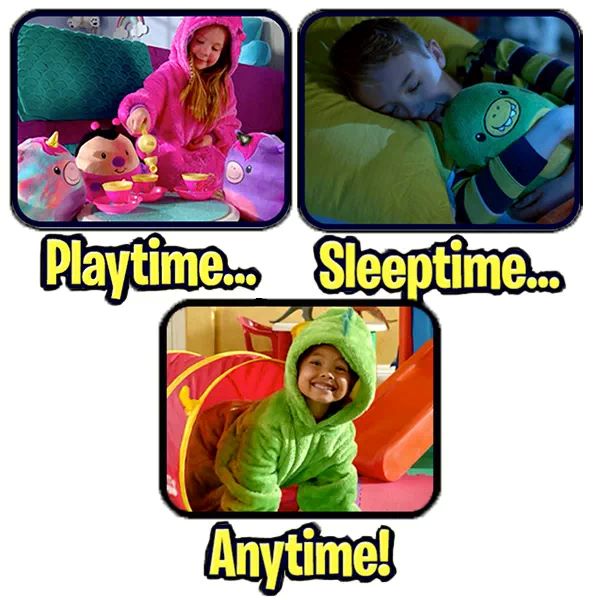 Когато дойде време за сън, лесно трансформирайте качулката обратно в плюшено животно. Това е толкова просто, колкото 1-2-3. PILLOWPET е идеалният спътник на вашето дете за сън, филмови вечери и гушкане. То може да се използва и като възглавница, на път или за уютно гушкане в леглото.