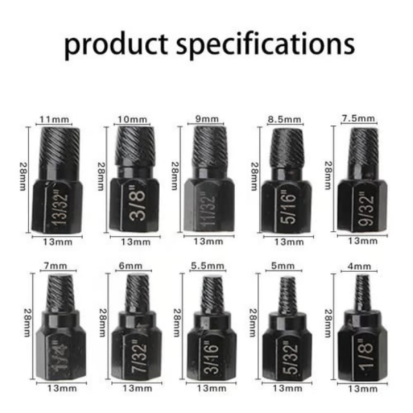 Развъртени или счупени винтове могат да направят дори и простите ремонти трудни. Комплект екстрактори за винтове SCREWX ви помага бързо да премахнете повредени винтове и болтове, за да завършите работата без усилие.