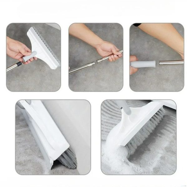 V-образният дизайн почиства фуги, первази и тесни ъгли, които стандартните метли просто прескачат. Плоската страна се справя с повърхности в банята, прозорци и отворени подове – всичко това с един инструмент.