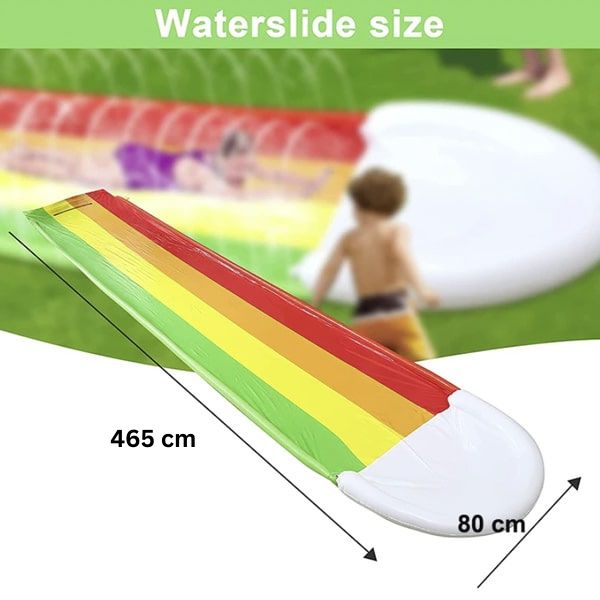 Прекарайте чудесно време на открито с надуваемата водна пързалка с разпръскваща система! Хлъзгавата повърхност позволява бързо плъзгане, а системата за разпръскване поддържа хлъзгавостта на пързалката и добавя вълнение. Подходяща е както за деца, така и за възрастни!