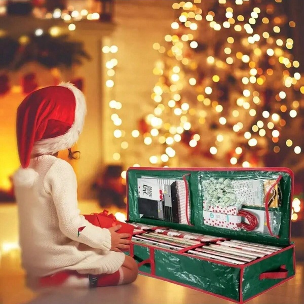 С достатъчно пространство тази чанта съхранява цялата ви празнична опаковъчна хартия, като държи всичко на едно място за лесен достъп по време на натоварените празнични дни.