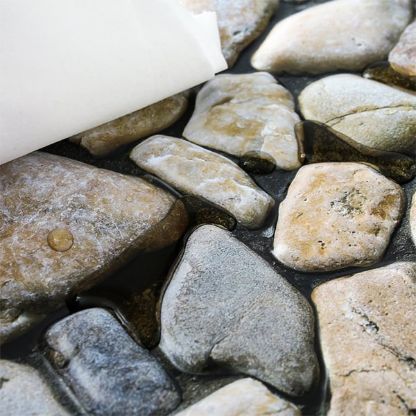 3 мм релеф създава реална сянка и дълбочина – ефектът изглежда като камък от разстояние, а не като тапет отблизо. Водоустойчивата матова винилова повърхност е устойчива на влага, мазнини и надрасквания – почиства се с влажна кърпа. Подходящо за кухни, бани, коридори и дневни.