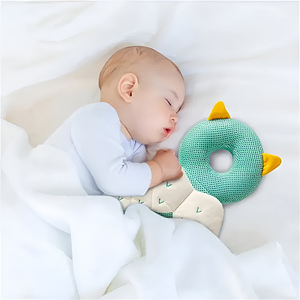 Тази мека и пухкава бебешка възглавница за глава може да се използва като успокояващ спътник на вашето бебе по време на дрямка и лягане. Плюшеният, дишащ материал е нежен към кожата на бебето ви, като гарантира, че то ще остане удобно и спокойно. Това познато, уютно присъствие помага да успокоите бебето си, като го улеснява да се отпусне и да заспи.