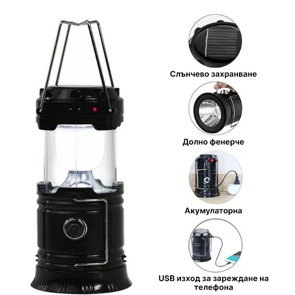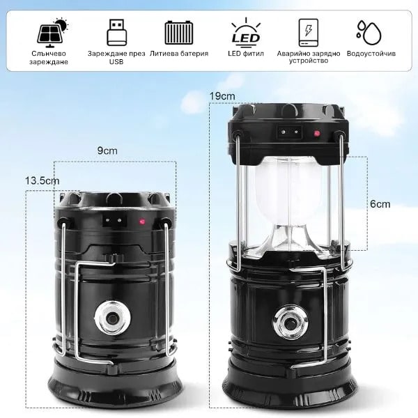 Слънчева Акумулаторна Лампа за Къмпинг + Фенерче | CAMPGLO