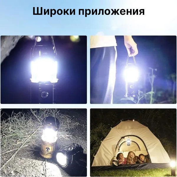 Това невероятно фенерче+лампа е подходящо за широк спектър от дейности. Използвайте го по време на риболов, туризъм, лов или просто за почивка в градината. Здравата дръжка на лампата ви позволява да я закачите навсякъде, осигурявайки осветление без ръце. Компактният ѝ и лек дизайн гарантира, че е лесна за пренасяне и съхранение, което я прави идеална за всички ваши приключения на открито и на закрито.