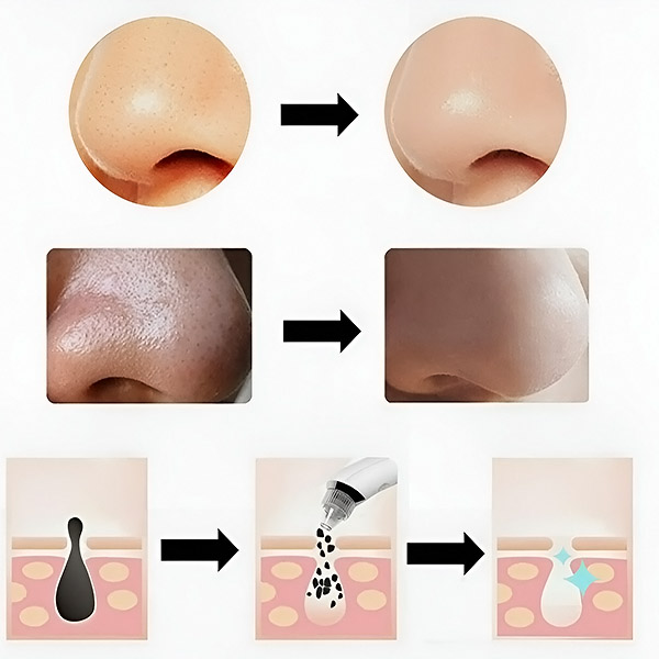 Не само изчиства порите, но и освежава кожата ви, като стимулира кръвообращението и нежно изглажда фините линии. Нежното засмукване масажира мускулите на лицето, като оставя кожата ви освежена и сияйна след всяка употреба.