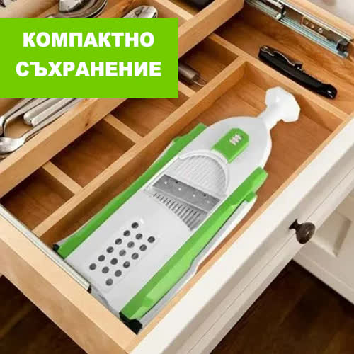 Сгъваемият дизайн спестява място, което го прави идеален за всеки размер на кухнята. Освен това Ви позволява бързо и безопасно да приготвяте плодове и зеленчуци в различни форми!